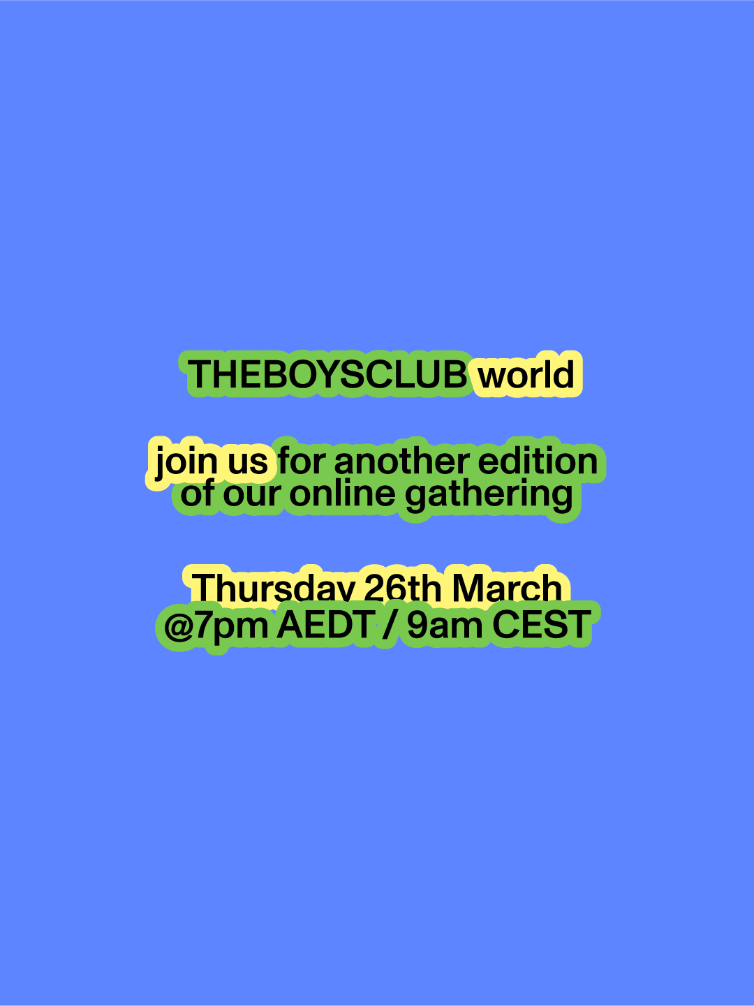 We’re hosting our second edition of The Boys Club World for March 2026.